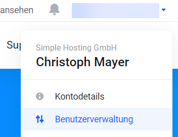 2. Klicken sie oben rechts auf ihren Namen und gehen sie zur Benutzerverwaltung